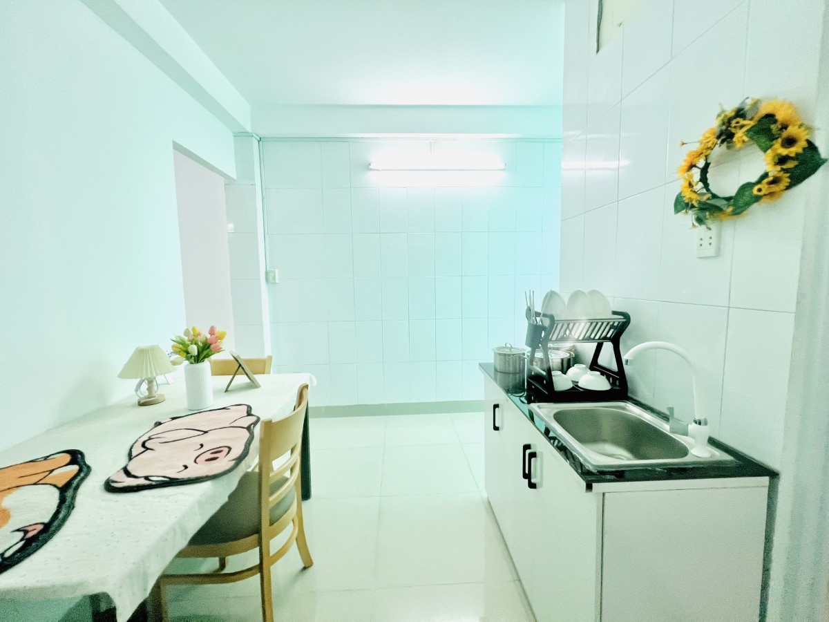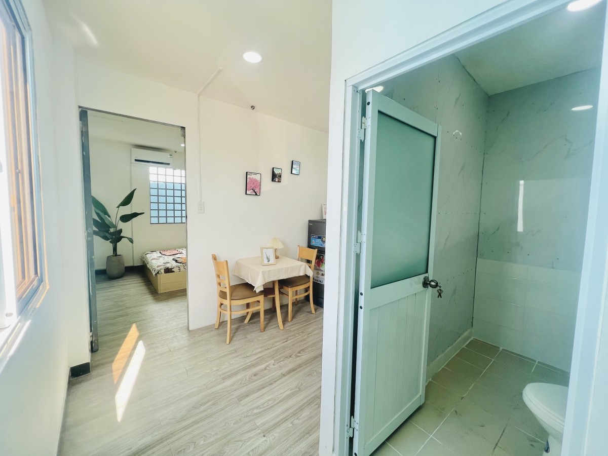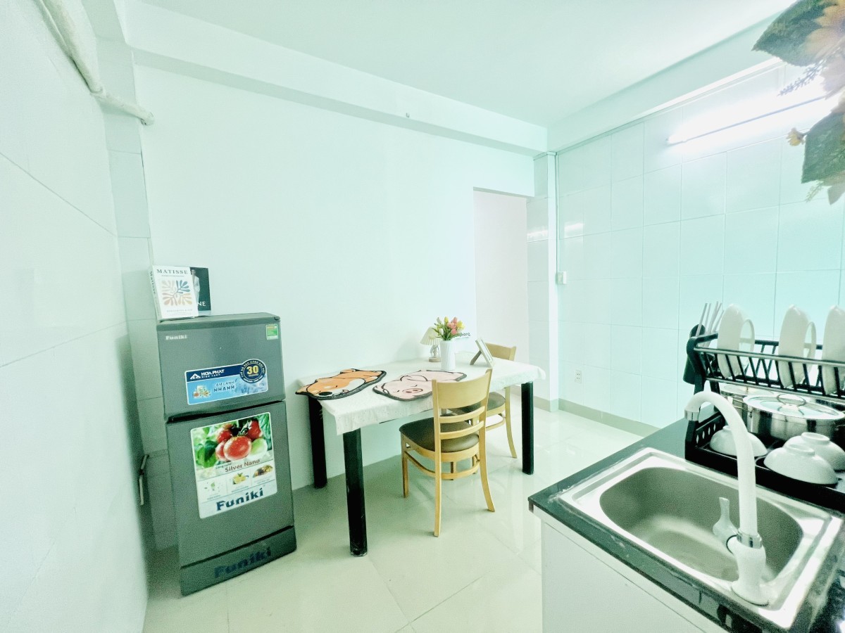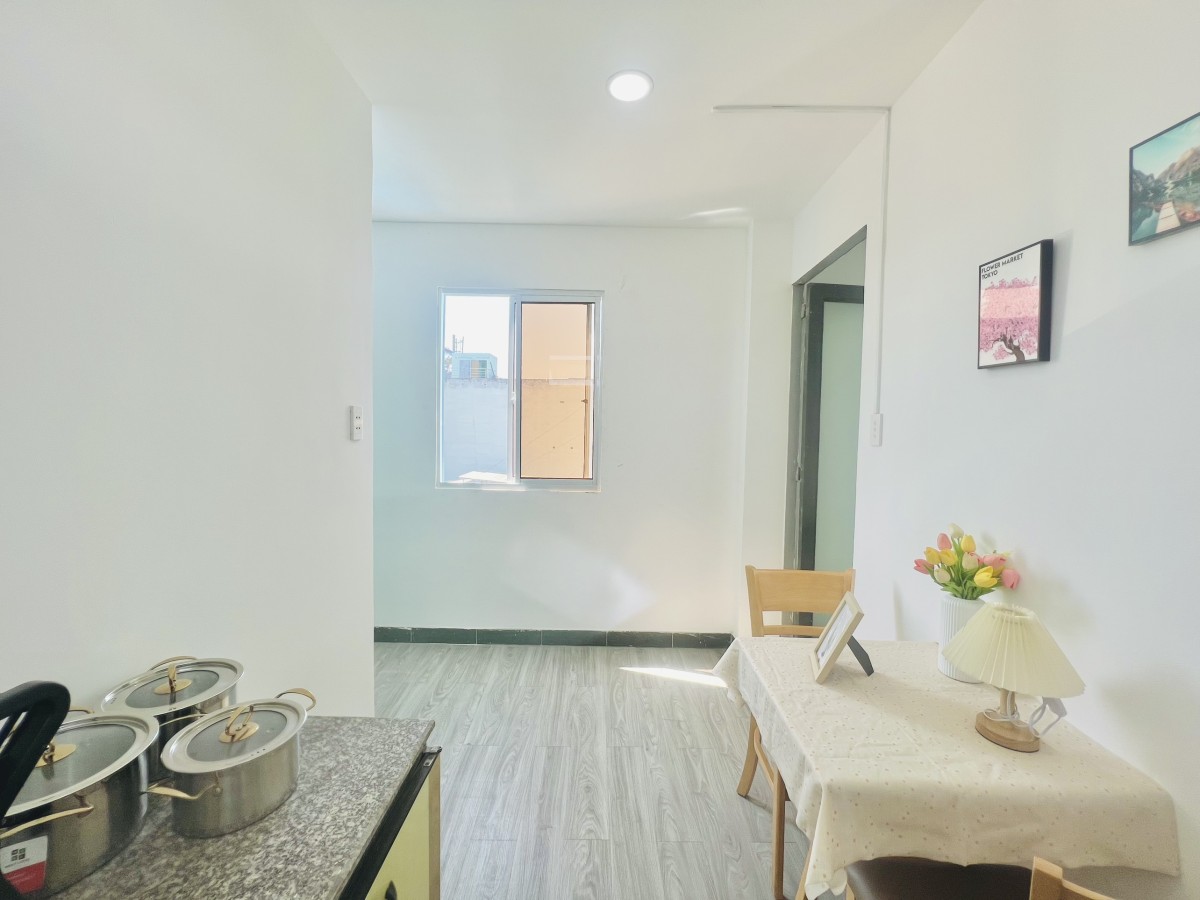 - 1PN tách bếp full nội thất: máy lạnh, tủ lạnh, tủ đồ, tủ bếp, nệm, bàn ăn