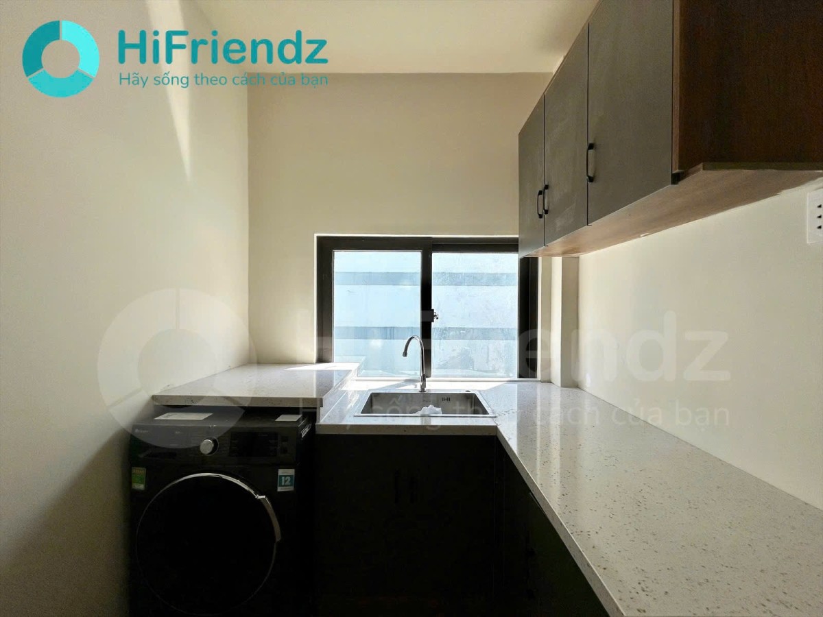 Trang bị full nội thất cao cấp: giường nệm, tủ quần áo, tivi, máy lạnh, máy giặt, tủ lạnh, bếp và dụng cụ nấu ăn — chỉ việc xách vali vào ở.