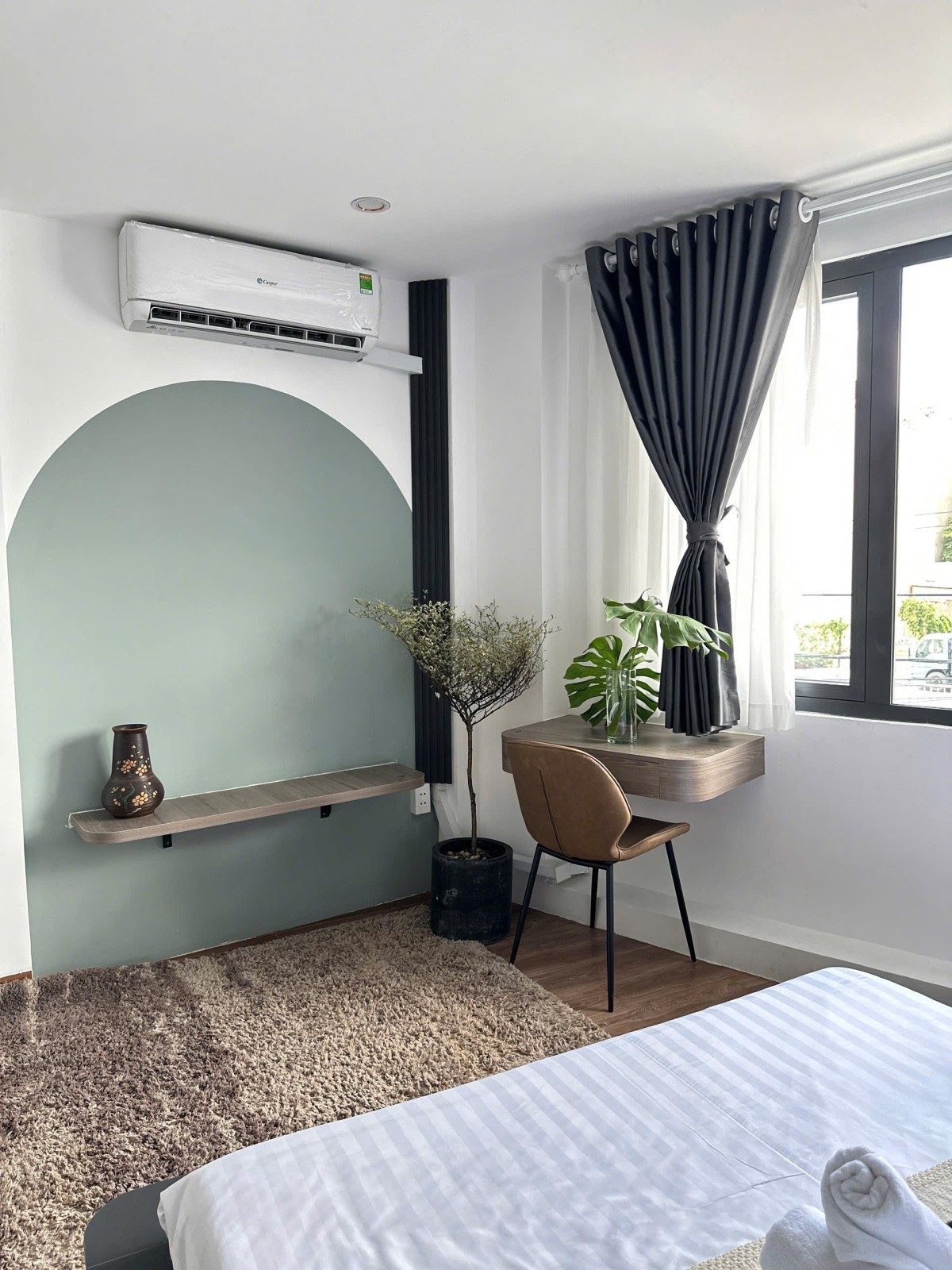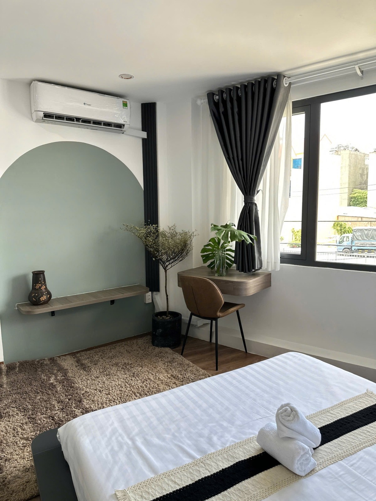 Căn hộ được thiết kế 1PN tách biệt, không gian thoáng với ban công riêng đón ánh sáng tự nhiên. Nội thất full đầy đủ gồm: giường nệm, tủ quần áo, sofa, bàn ăn, máy lạnh, tivi, rèm cửa, khu bếp trang bị kệ bếp – tủ lạnh, đặc biệt có máy giặt riêng trong căn, tiện lợi và riêng tư.