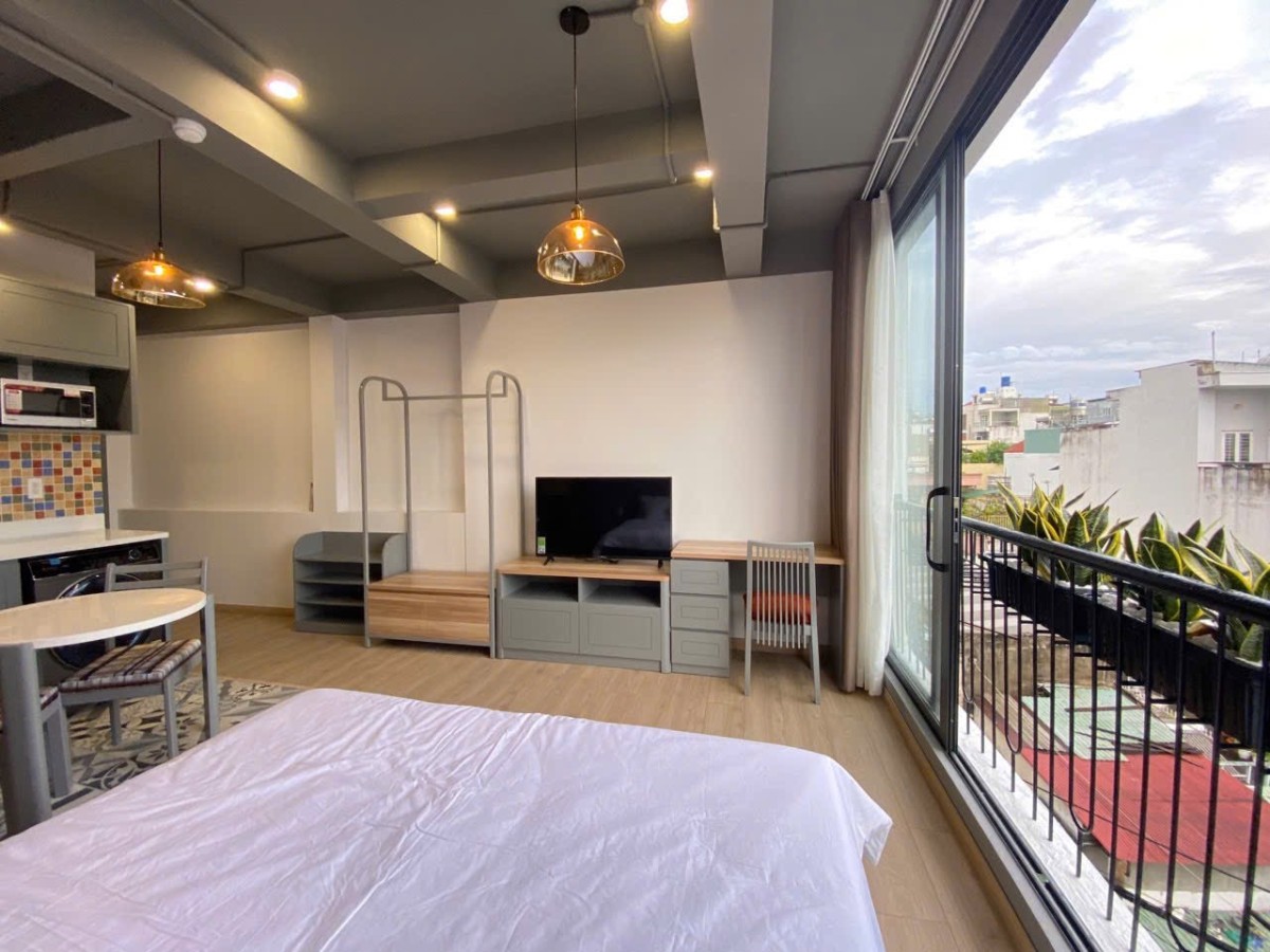 Nội thất đầy đủ: Căn hộ 1 phòng ngủ được trang bị đầy đủ nội thất gồm giường, tủ quần áo, sofa, bàn ăn, TV, máy lạnh, bếp, tủ lạnh, máy giặt, và ban công rộng thoáng. Bạn có thể dọn vào ở ngay mà không cần mua sắm thêm.