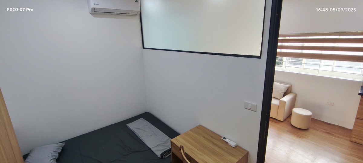 Nội thất : Giường , bàn làm việc tủ quần áo , điều hòa , bình nóng lạnh, tủ bếp trên dưới , bếp từ, máy giặt, máy sấy riêng .....