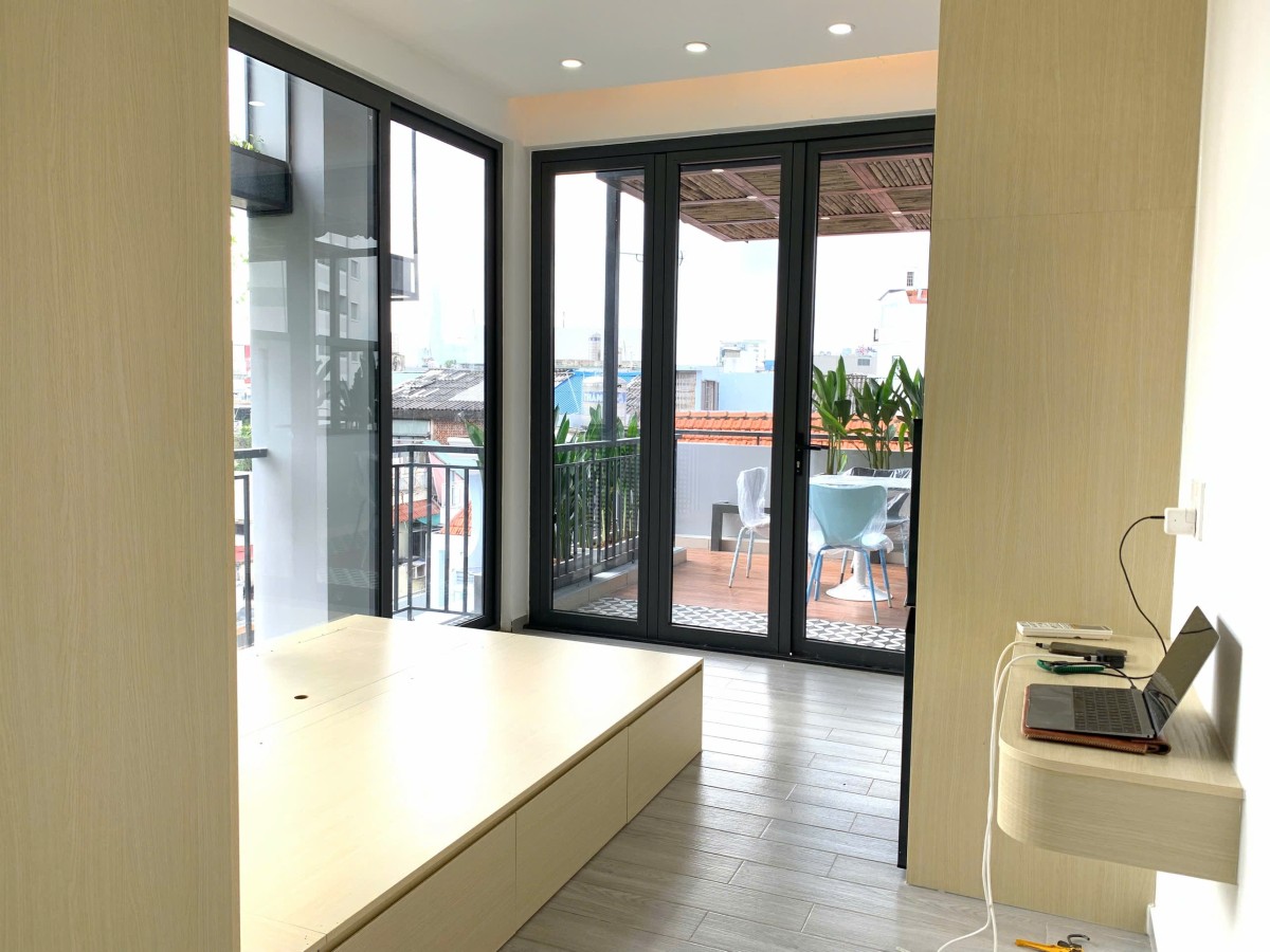 Không gian: Thiết kế hiện đại, ban công thoáng mát, ánh sáng tự nhiên tràn ngập.