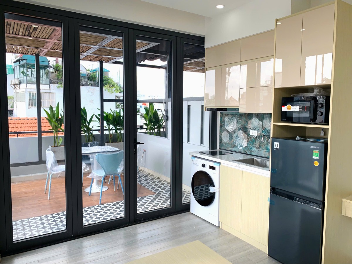 Nội thất mới tinh: Giường, nệm, tủ quần áo, máy lạnh, tủ lạnh, bếp, máy giặt, máy nước nóng… tất cả đều mới 100%.