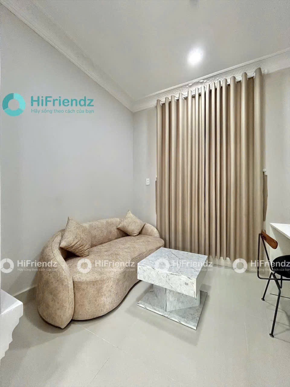 Căn hộ được thiết kế không gian mở, tối ưu diện tích, thoáng mát và nhiều ánh sáng tự nhiên. Nội thất đầy đủ gồm giường nệm, tủ quần áo, sofa, bàn làm việc, TV, máy lạnh, chỉ cần xách vali vào ở.