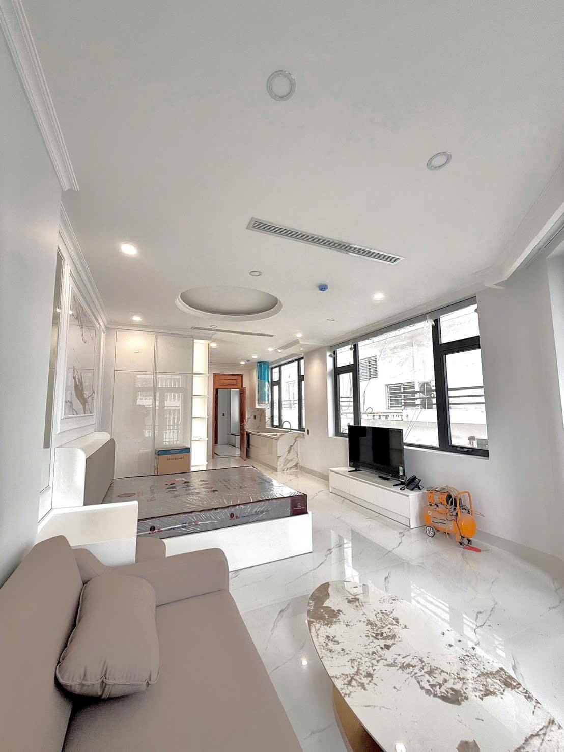 Căn hộ studio rộng 40m², thiết kế không gian mở, thoáng đãng và yên tĩnh. Căn hộ có cửa sổ lớn đón ánh sáng tự nhiên, giúp không gian luôn sáng và thông thoáng.