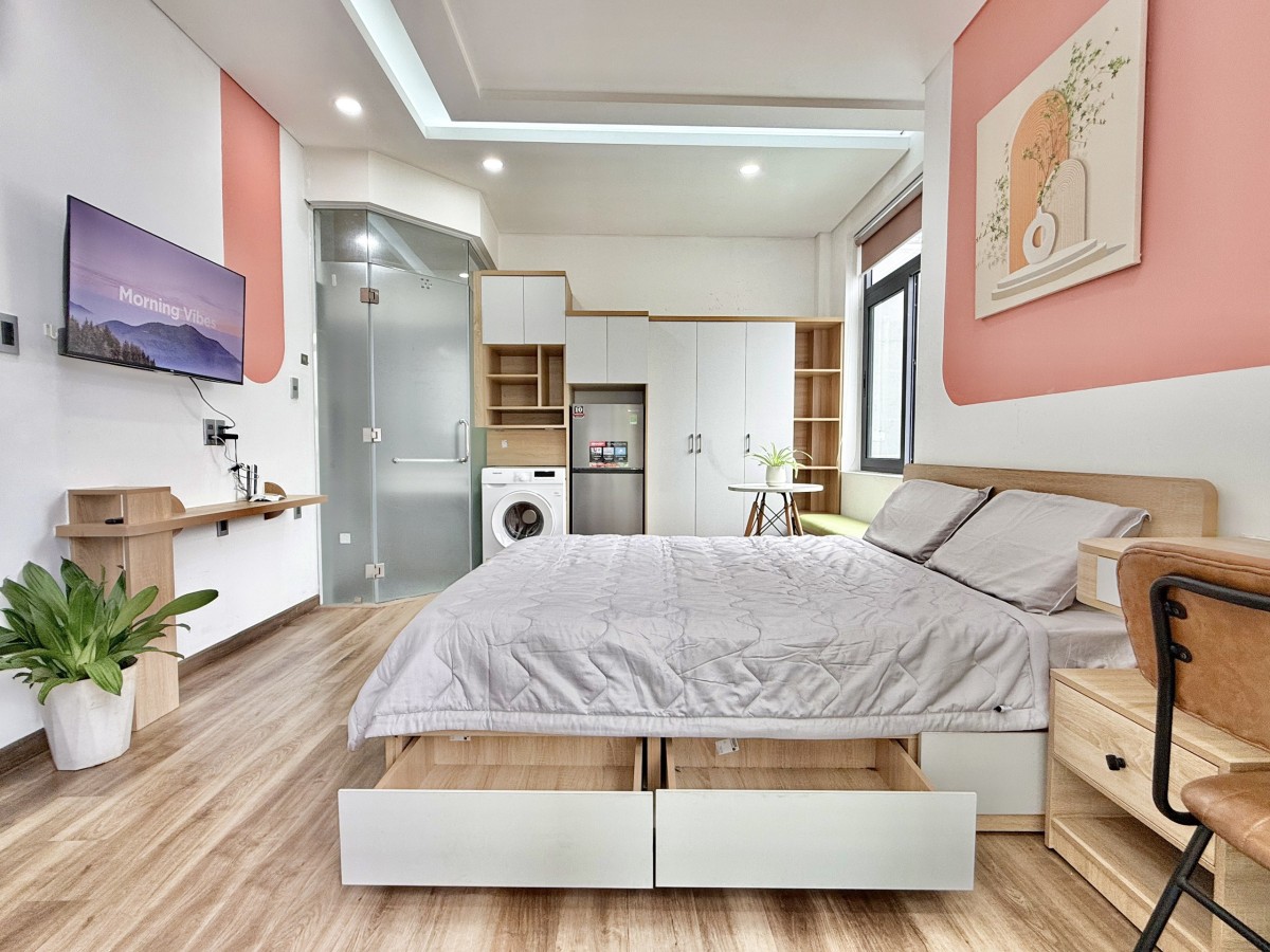 Tiện ích: Bao gồm nội thất đầy đủ (máy lạnh, tủ lạnh, máy giặt, TV, sofa, giường, v.v.), Wi-Fi tốc độ cao, thang máy, bảo vệ 24/24, bãi đỗ xe, và dịch vụ dọn dẹp, máy giặc...