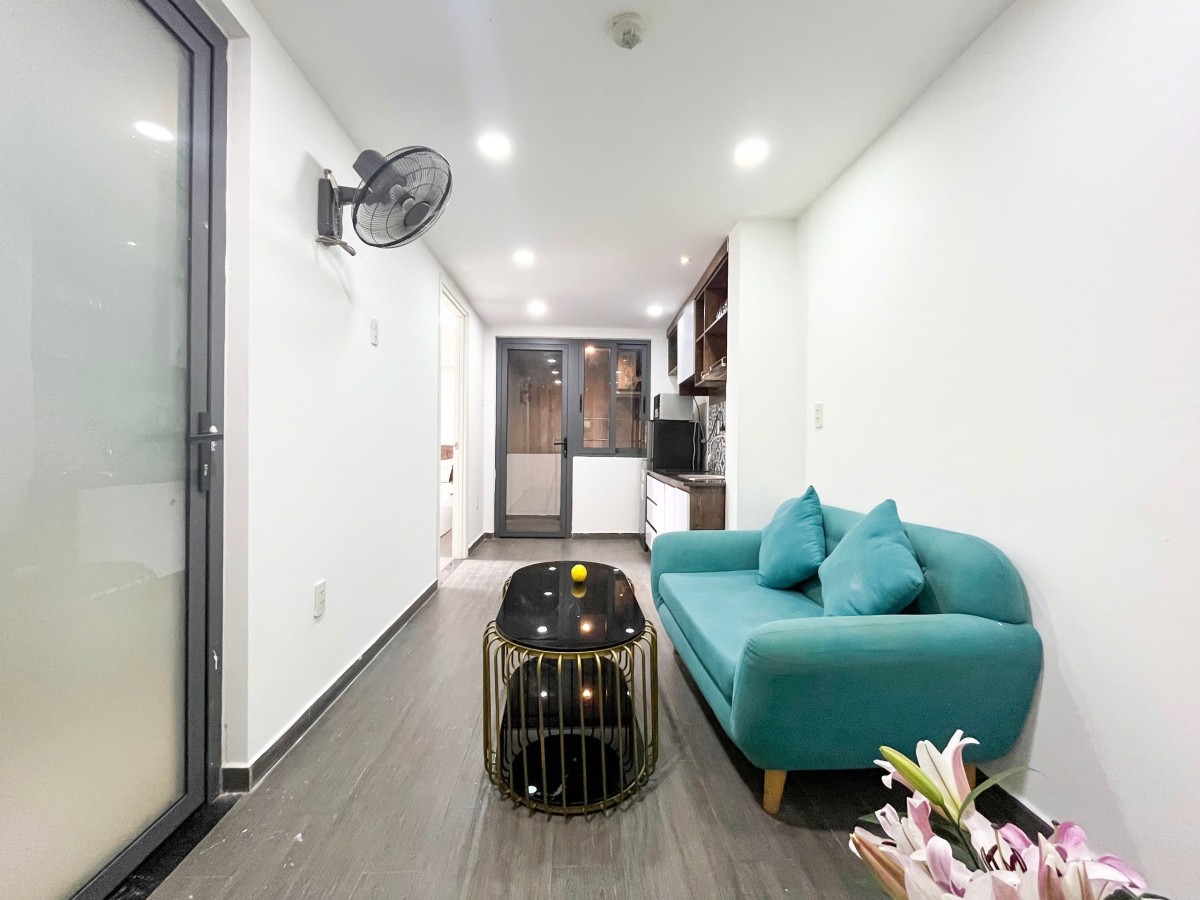 Căn hộ rộng rãi 45m², thiết kế 1 phòng ngủ riêng biệt, có ban công thoáng mát.