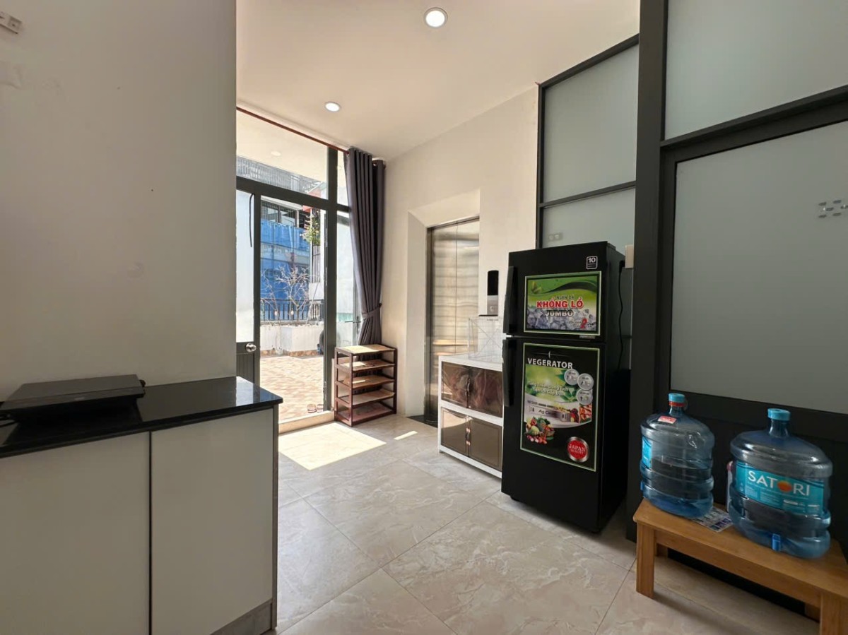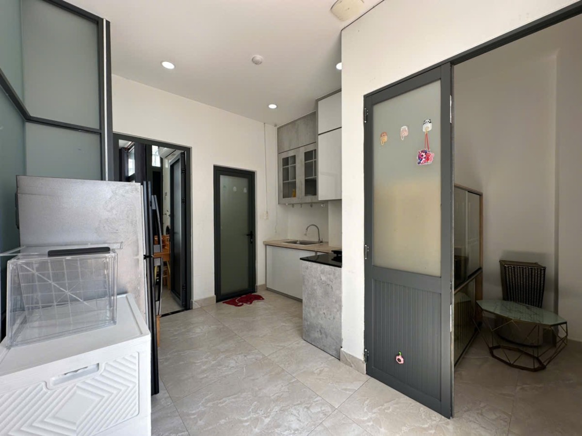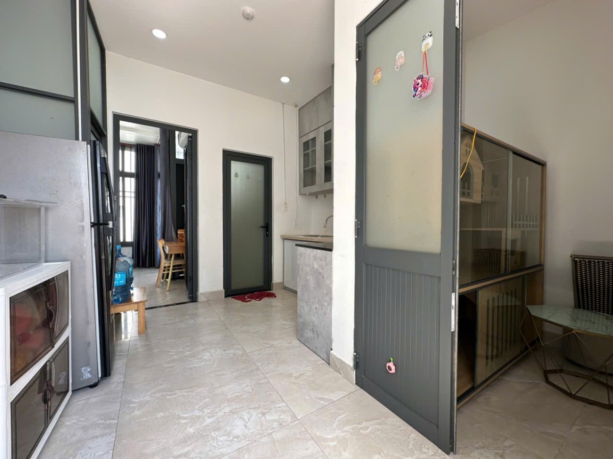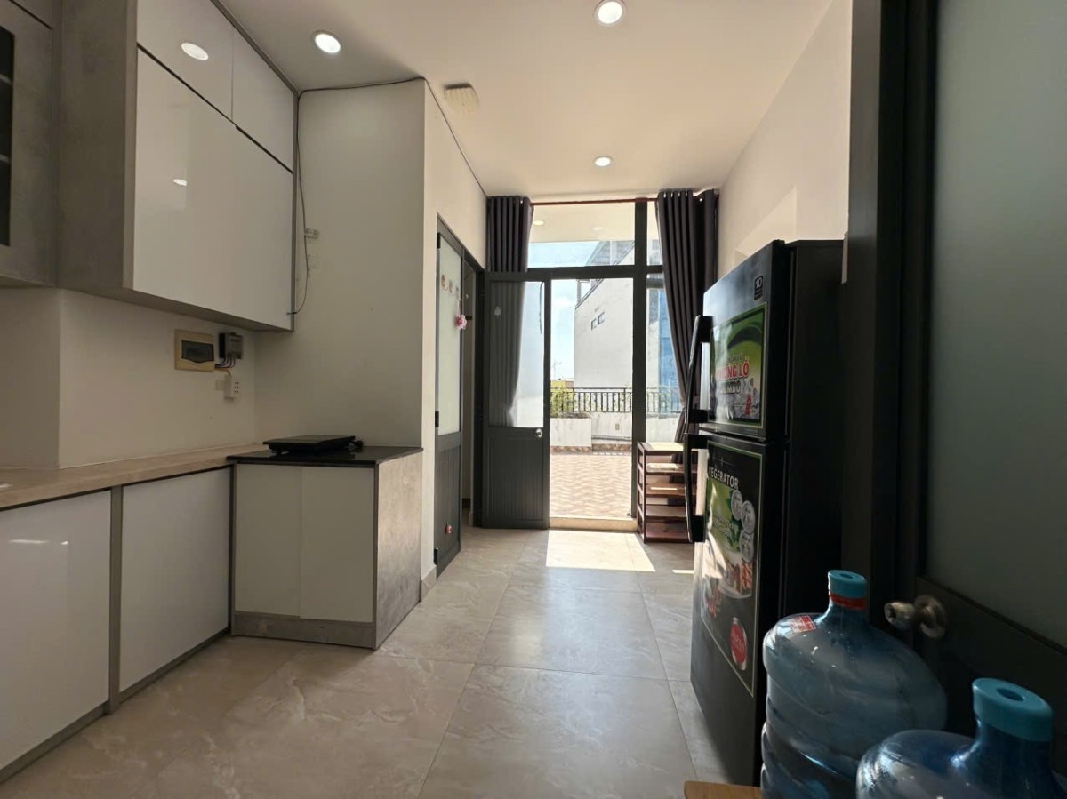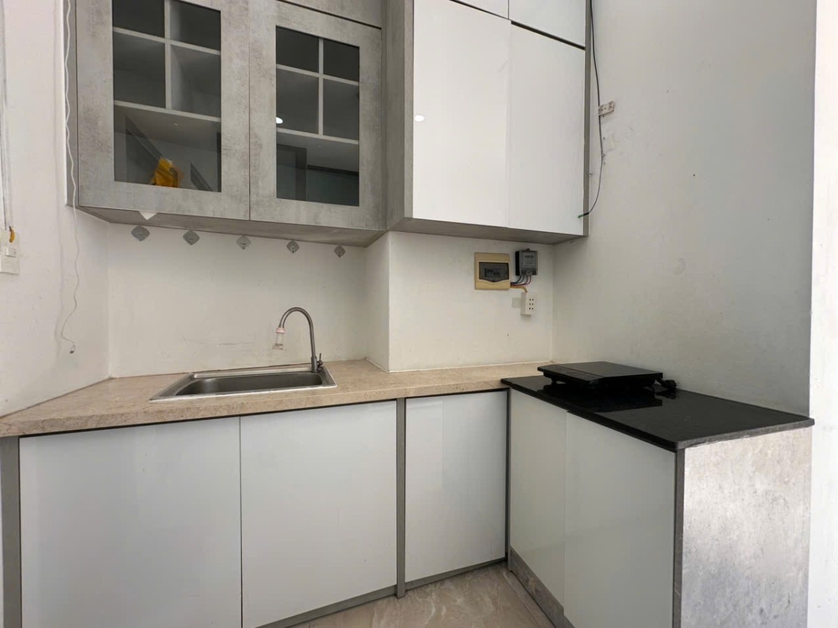 •Khu bếp: Thiết kế mở, đầy đủ tủ bếp trên – dưới, bếp điện/bếp từ, máy hút mùi, tủ lạnh, lò vi sóng, ấm đun nước và dụng cụ nấu ăn cơ bản.