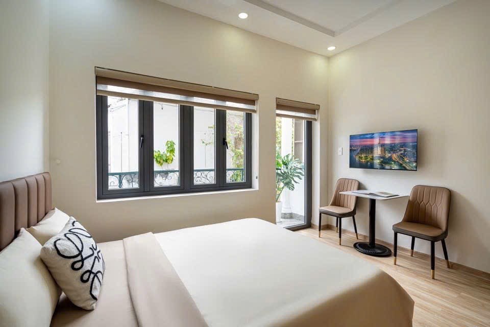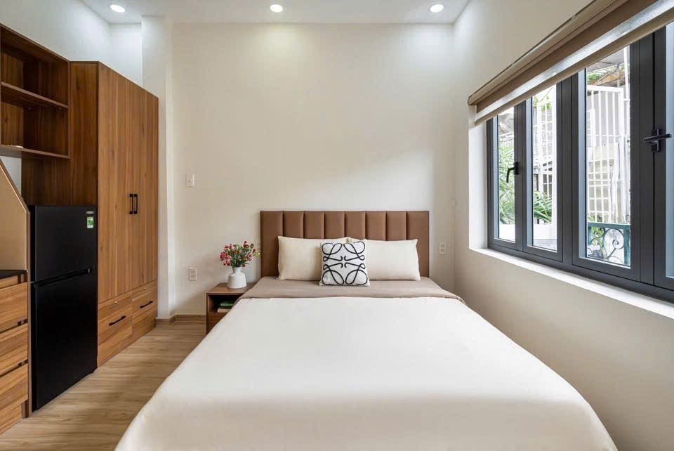 Căn hộ 1 phòng ngủ thiết kế hiện đại, đầy đủ nội thất, có ban công rộng thoáng và thang máy, nằm ngay trung tâm quận Tân Bình – khu vực được nhiều chuyên gia và người nước ngoài lựa chọn.
