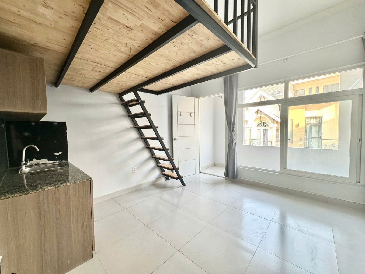 Căn hộ Duplex thiết kế hiện đại, có ban công thoáng mát, không gian rộng trần cao ánh sáng tự nhiên