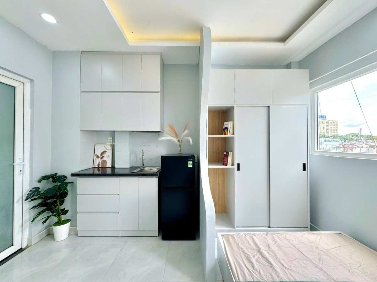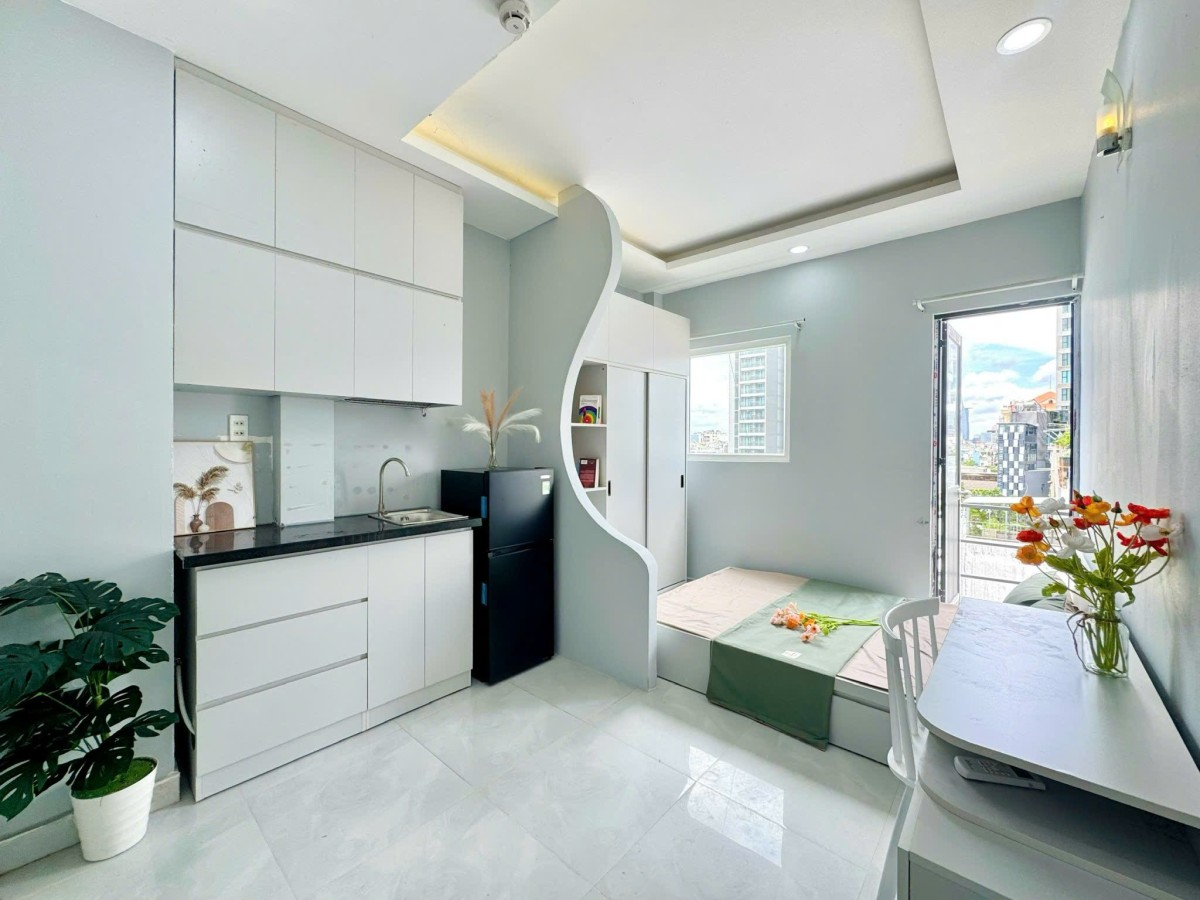 •Không gian studio rộng rãi, có ban công thoáng mát, nhiều ánh sáng