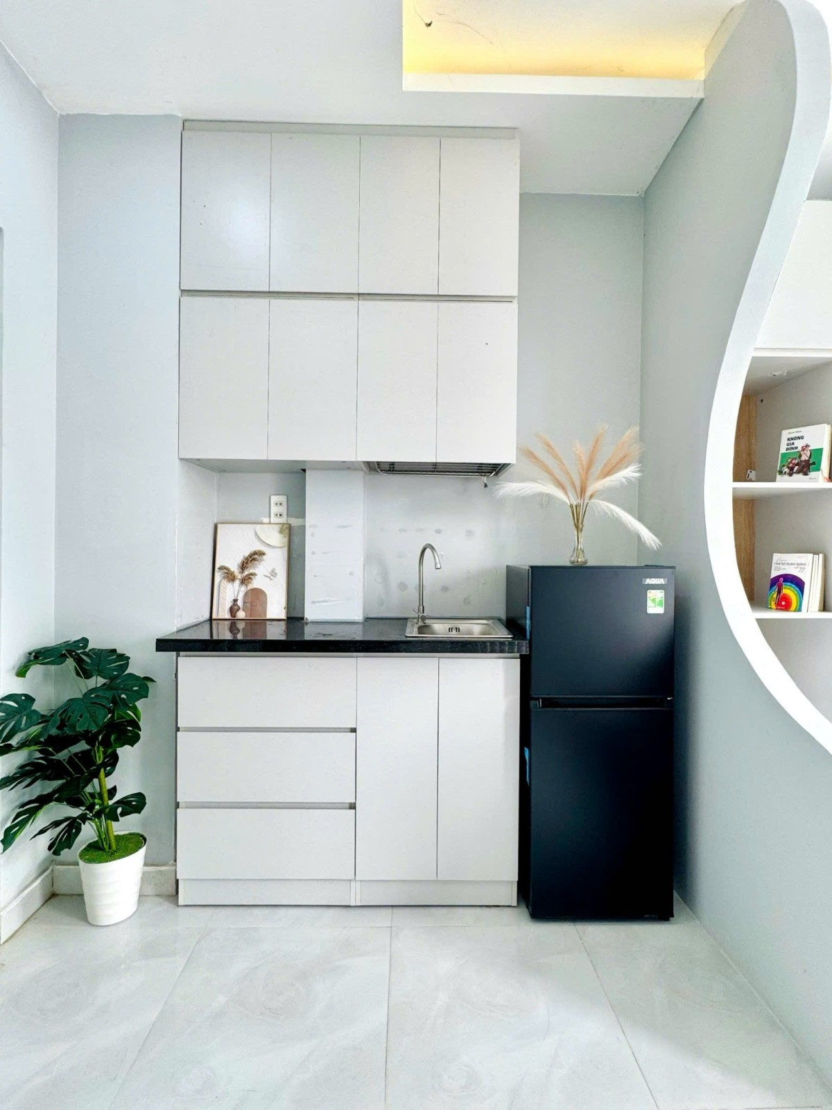 •Khu bếp tiện nghi: bếp điện, tủ lạnh, lò vi sóng, dụng cụ nấu ăn