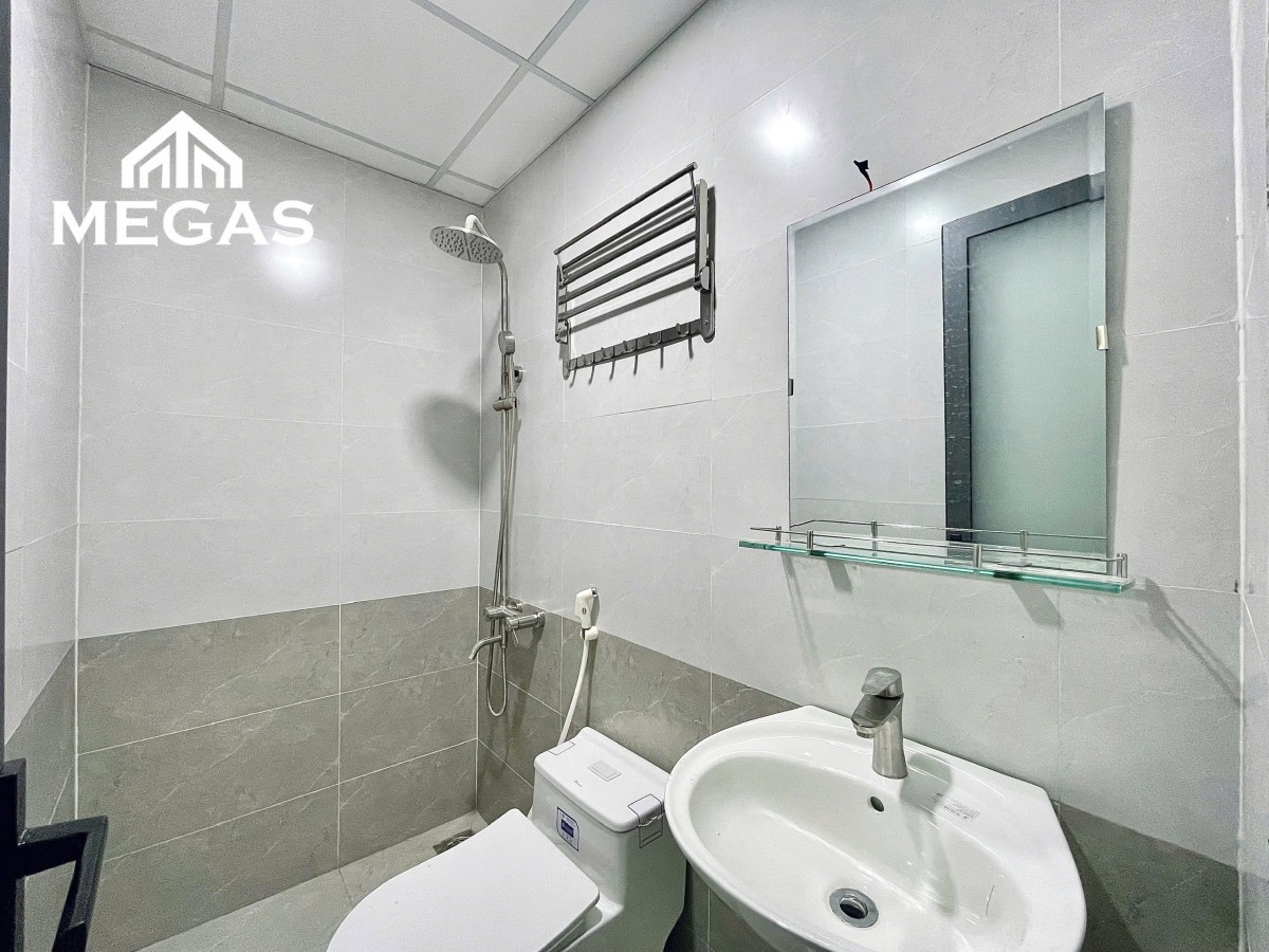•Phòng tắm hiện đại với vòi sen kính, bình nóng lạnh
