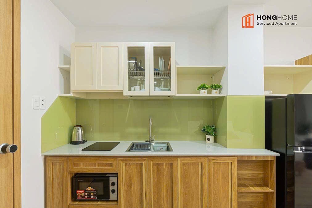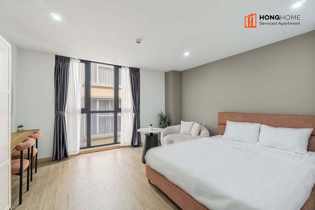 Căn studio thiết kế hiện đại, ban công thoáng mát, ánh sáng tự nhiên, nội thất đầy đủ.