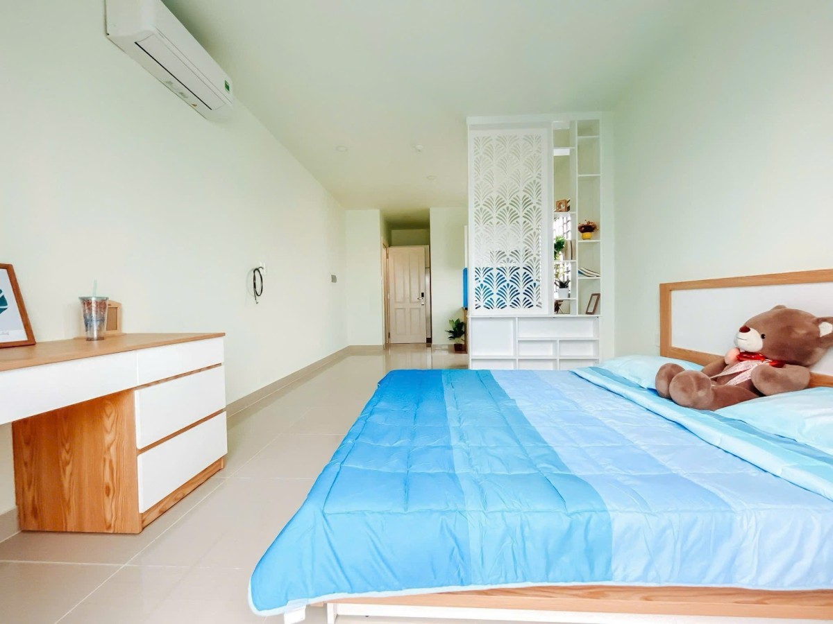 Phòng đẹp, rộng, đầy đủ nội thất: máy lạnh, giường nệm, tủ lạnh, bếp…