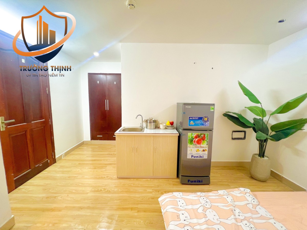 - Phòng trang bị sẵn Nội thất studio, Máy lạnh, Tủ âm tường, Bàn ghế, Kệ bếp