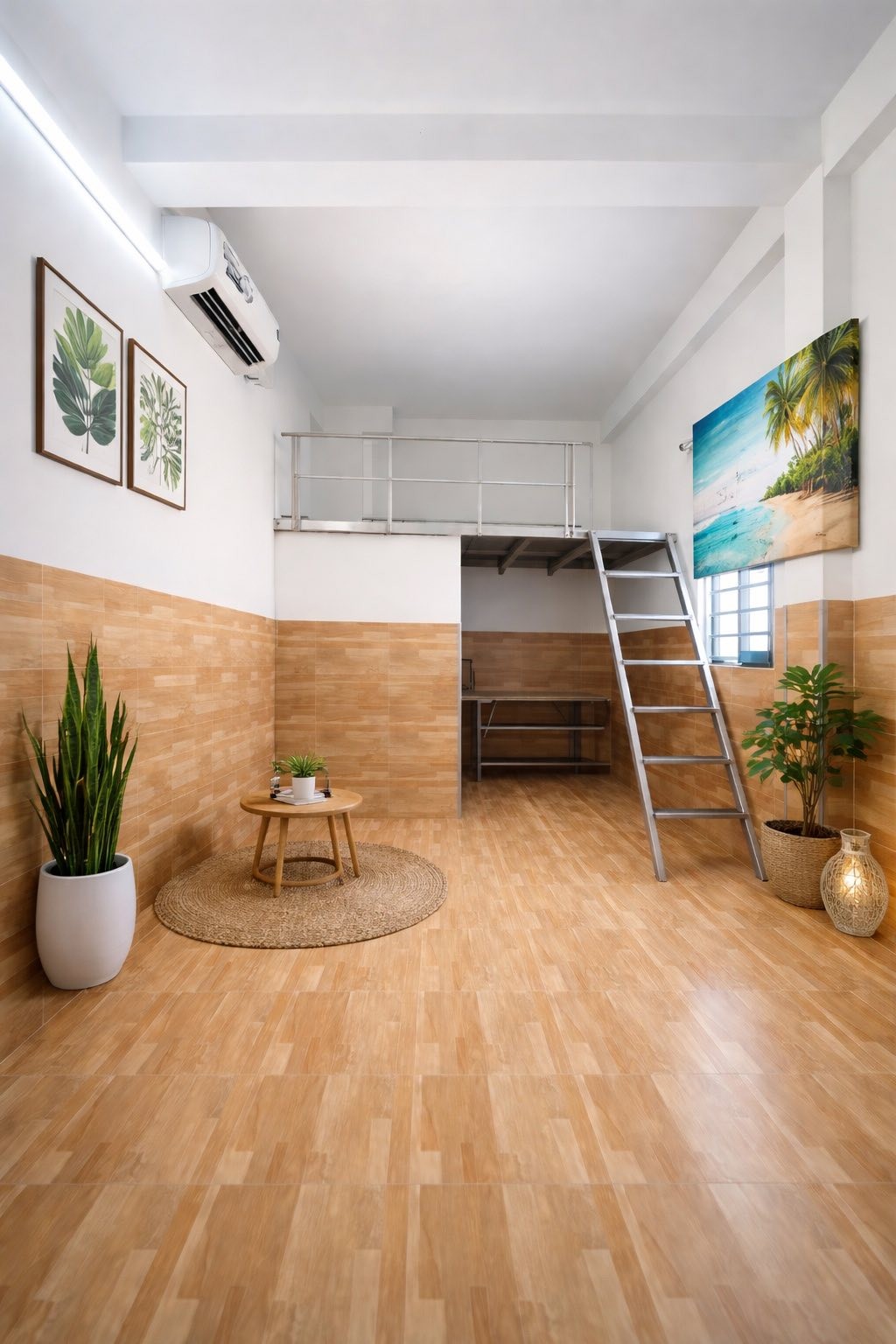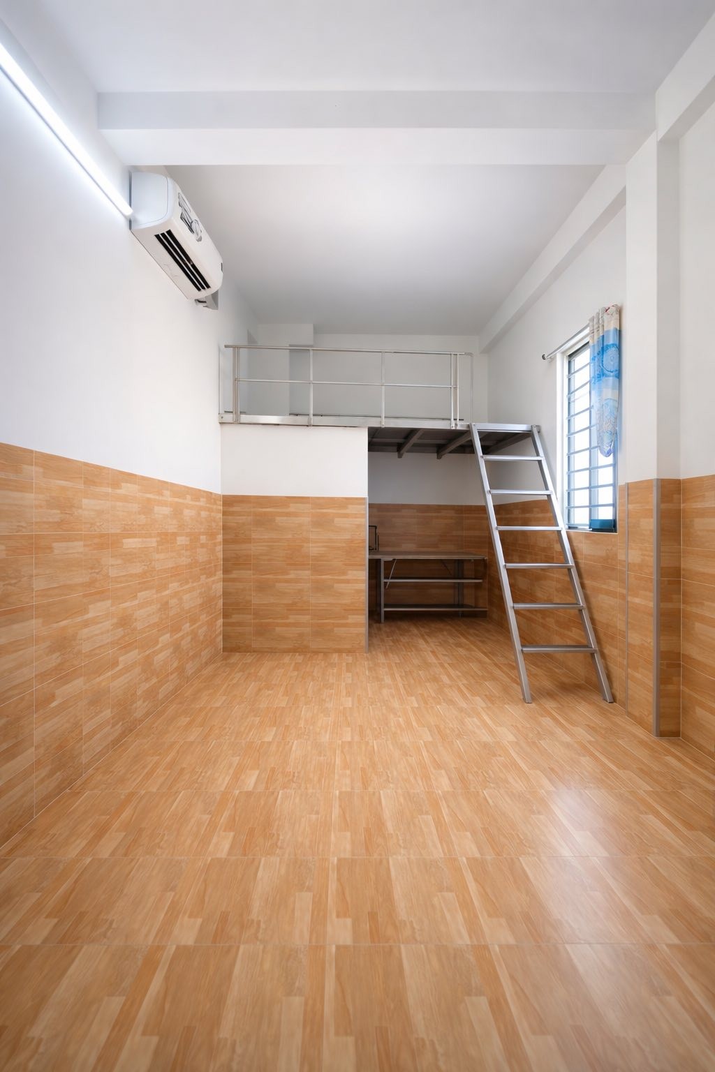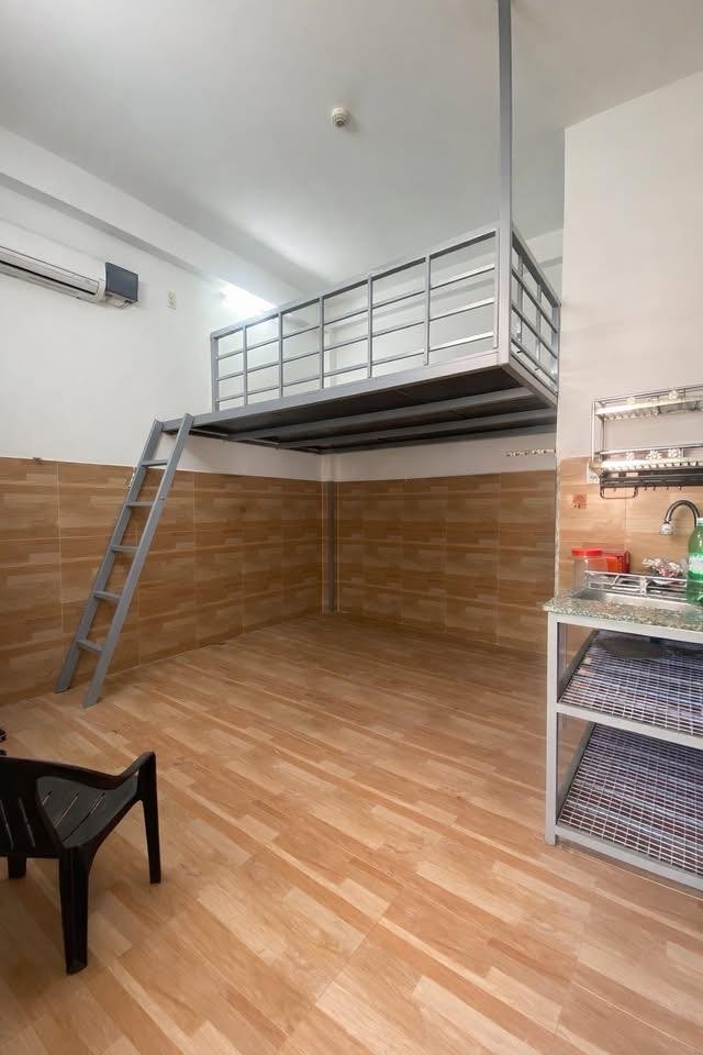 Sẵn máy lạnh, kệ bếp, phòng rộng cửa sổ. Di chuyển thang máy
