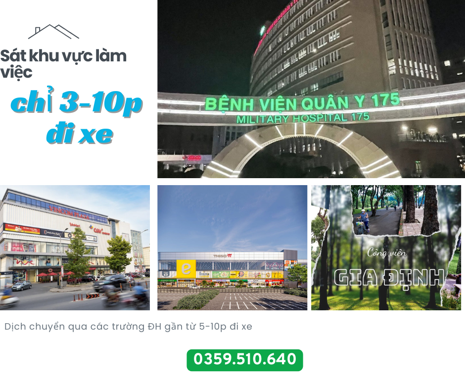 Gần Bệnh viên Quân Y 175, Vincom Phan Văn Trị, Công Viên Gia Định, Công Viên Văn Hoá, Sân Bay "Tân Sơn Nhất"...