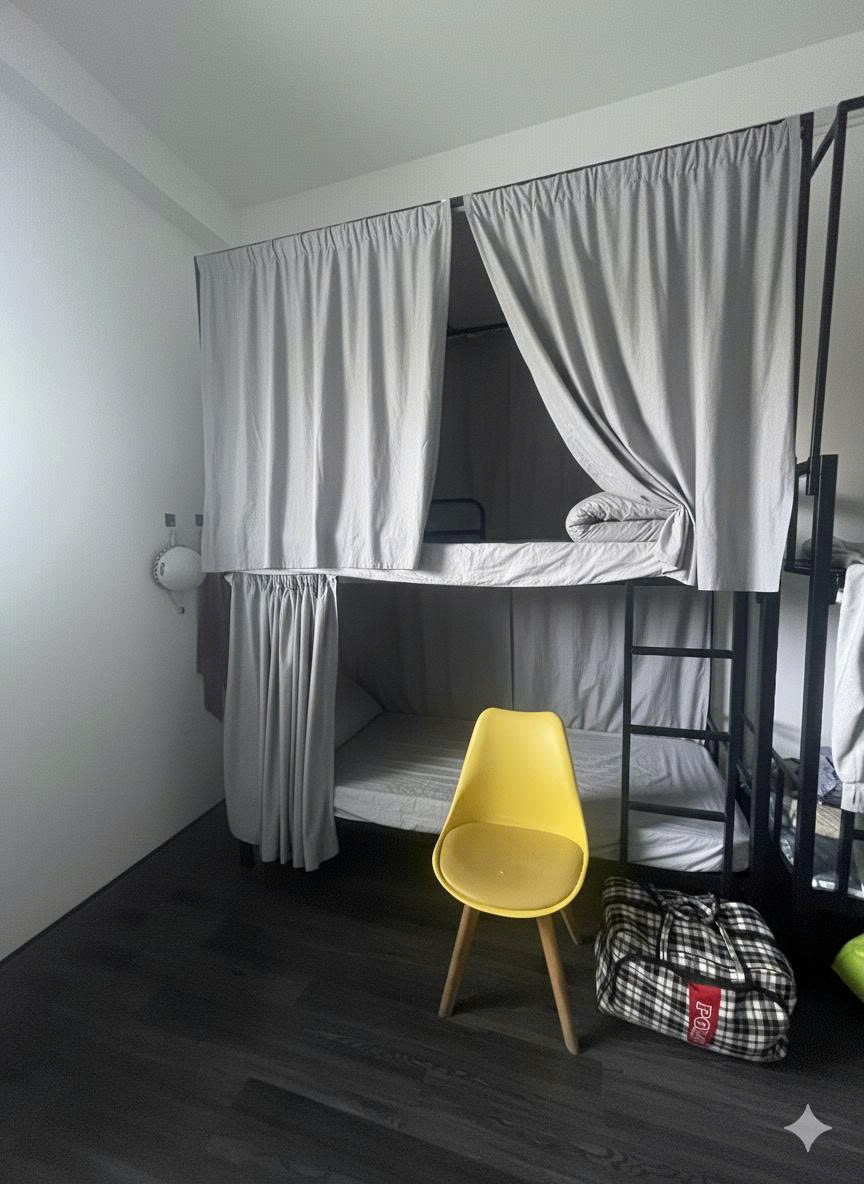 Phòng ốc: Máy lạnh 24/7, giường nệm êm, tủ khóa riêng.