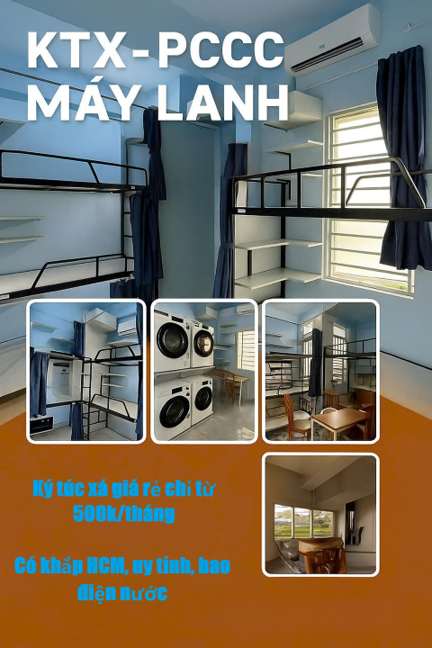 Không gian sống đầy đủ: Giường tầng thoáng mát, có ổ cắm, bàn làm việc riêng, máy lạnh & quạt