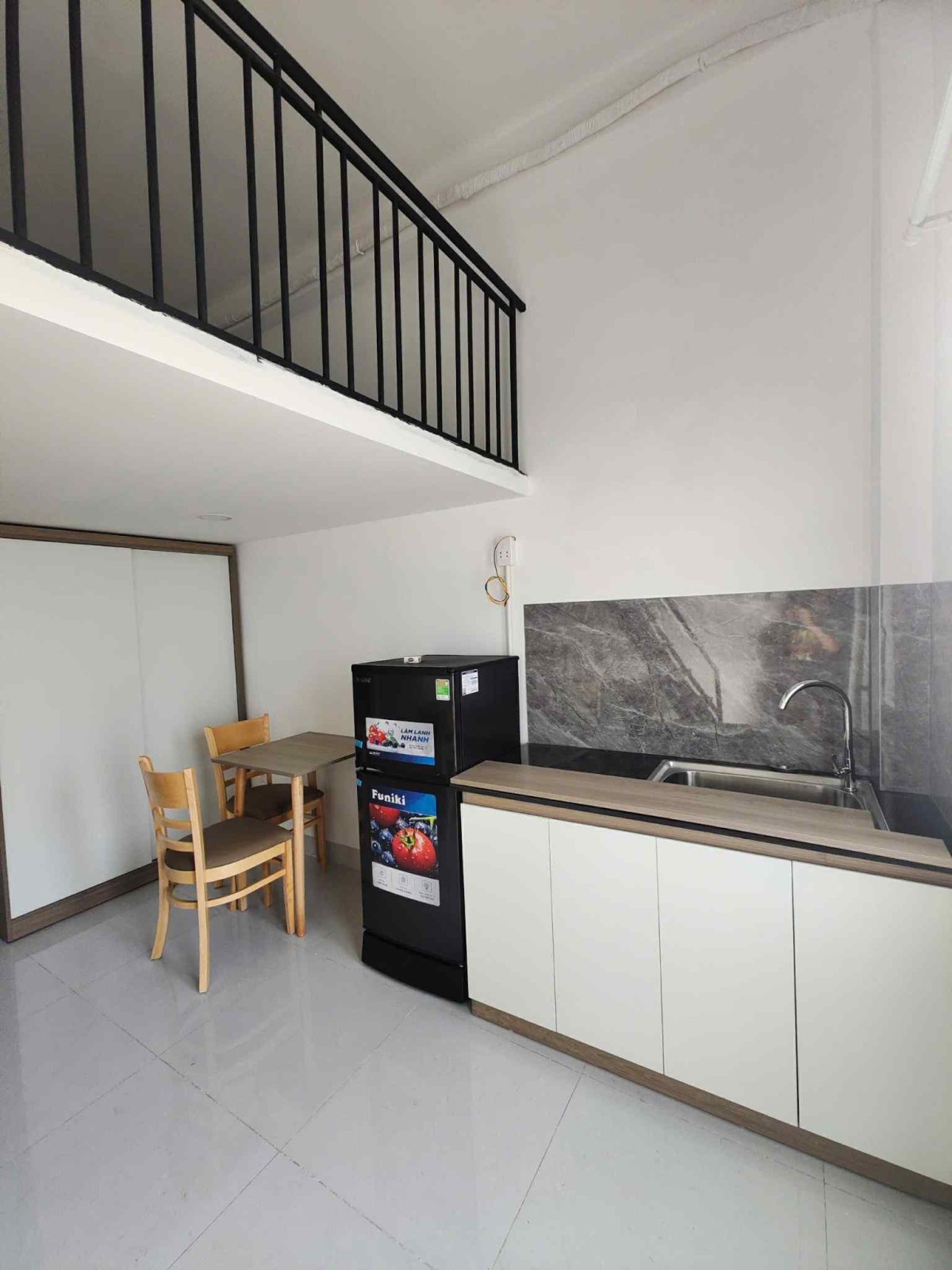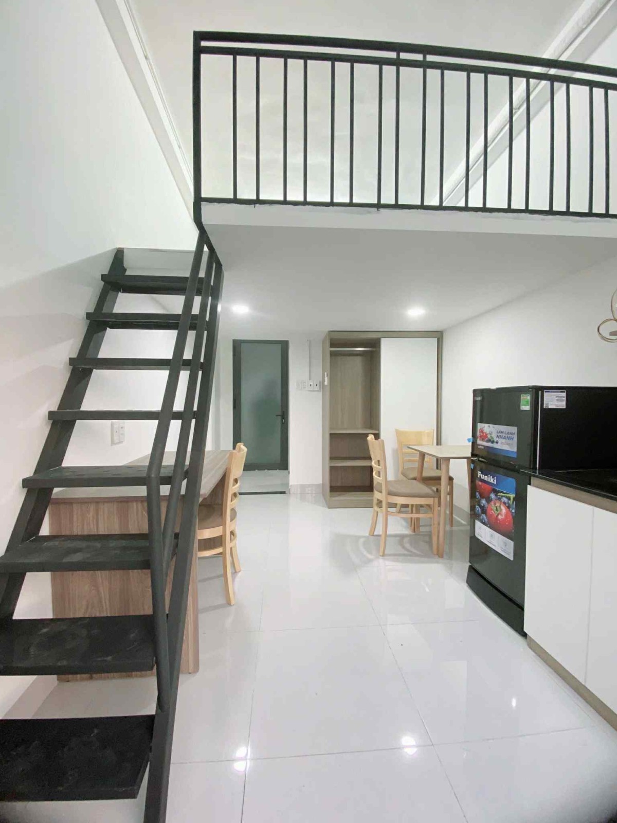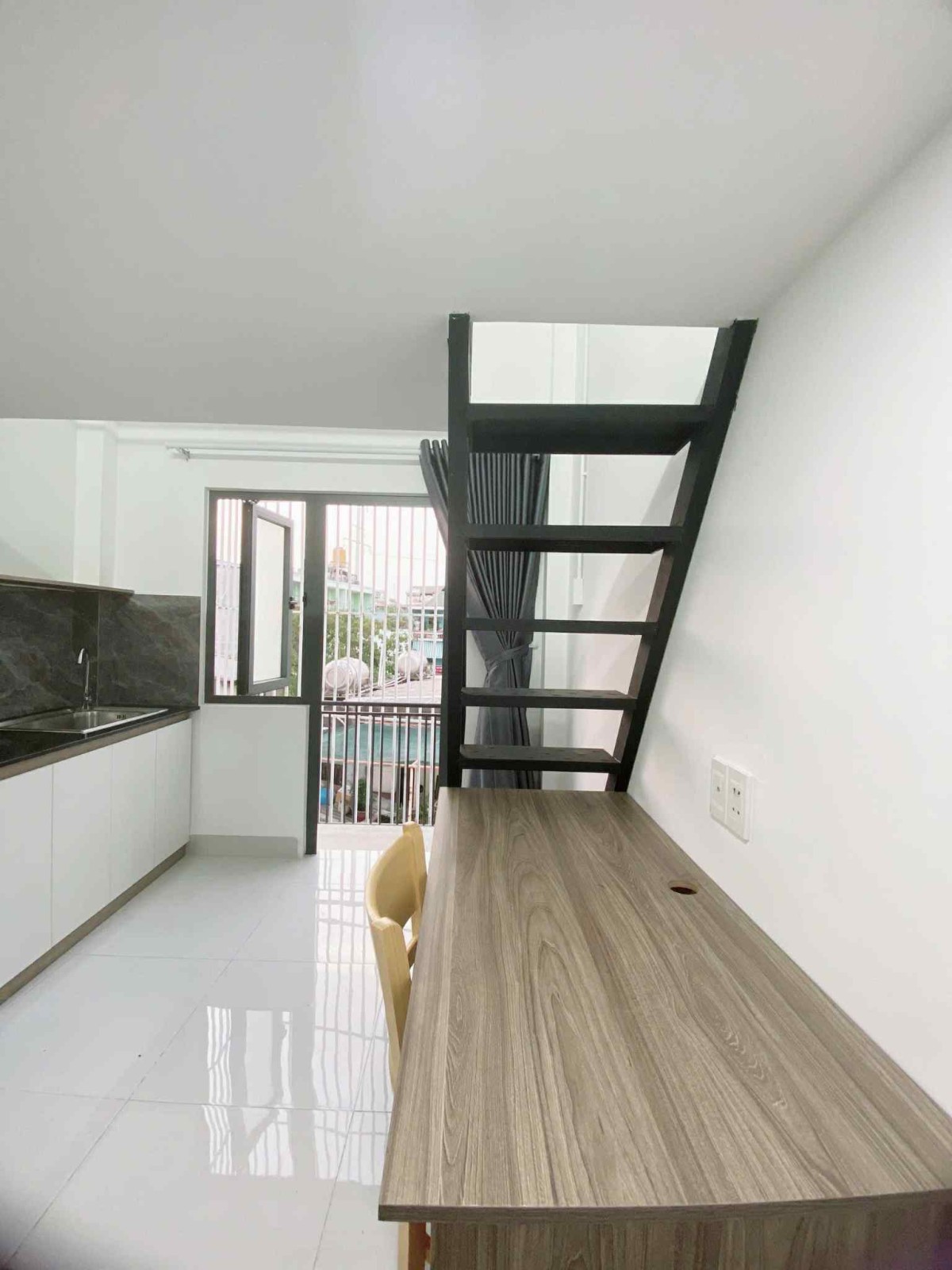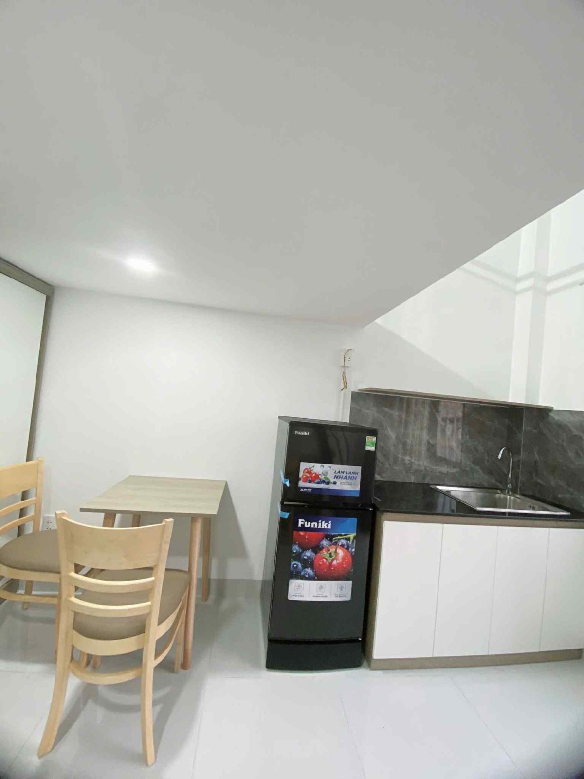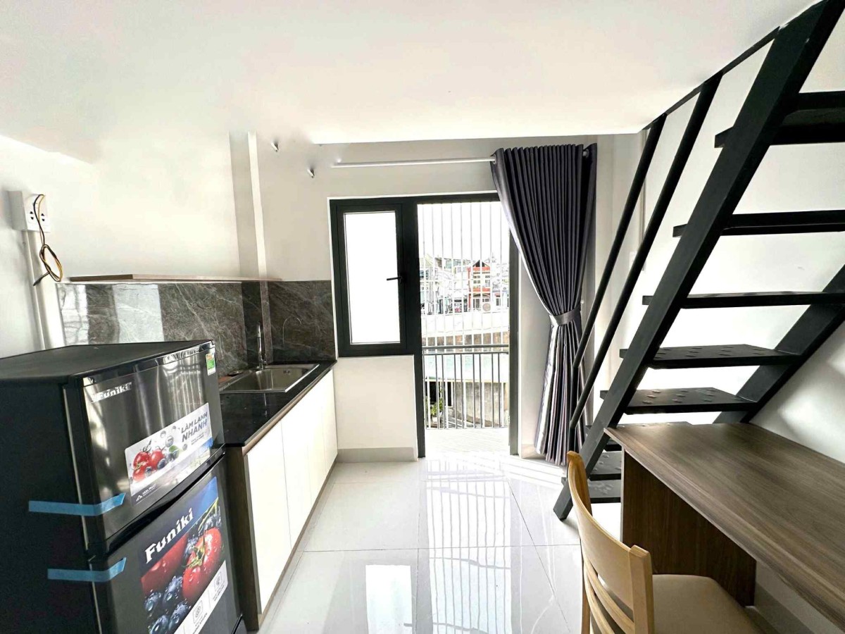 -)- Full nội thất : nệm drap mềnh, tủ, tủ lạnh, máy lạnh, kệ bếp, bàn làm việc, bàn ăn