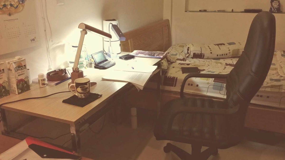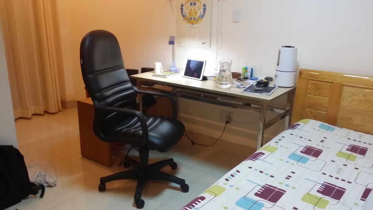Phòng lớn đầy đủ toilet, máy lạnh,tủ lạnh, tủ quần áo, giường nệm và bàn làm việc.