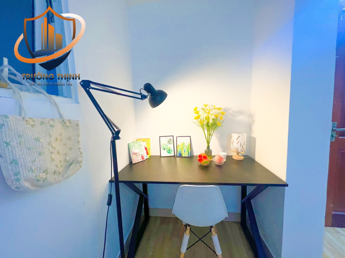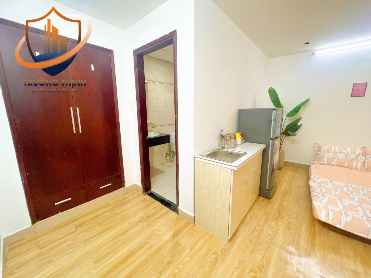 - Phòng trang bị sẵn Nội thất Studio, Máy lạnh, Tủ âm tường, Bàn ghế, Kệ bếp