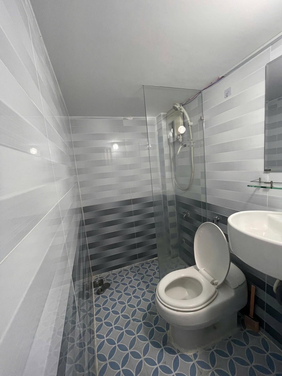 Tầng trệt + Nội thất: Máy lạnh, tủ lạnh, kệ bếp, máy giặt riêng, nệm, tủ quần áo, máy nước nóng.