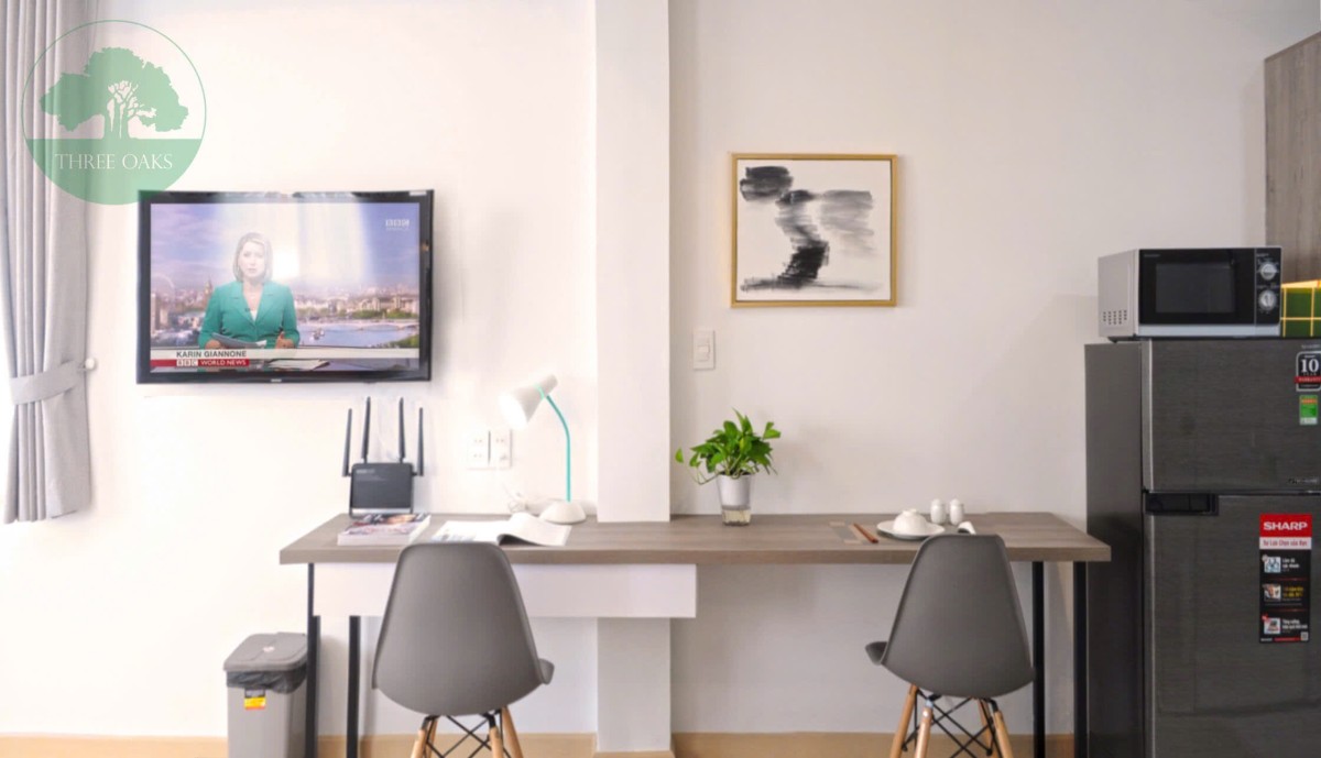 •Nội thất cao cấp: giường nệm êm ái, bàn làm việc, tivi, máy lạnh