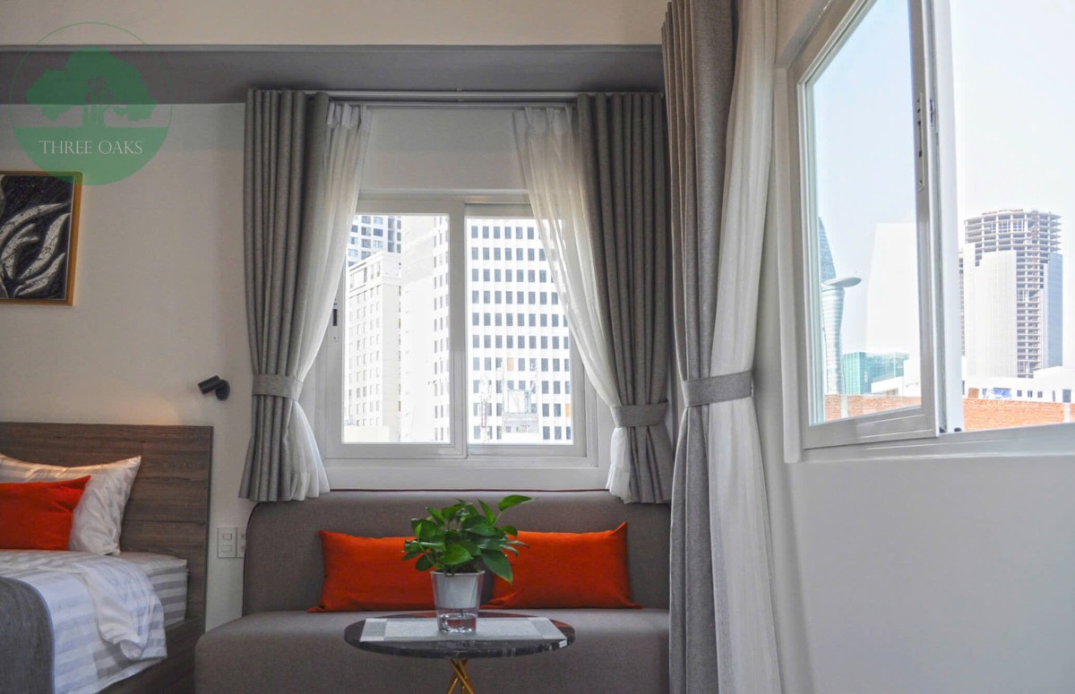 •Cửa sổ lớn, rèm hai lớp sang trọng, decor hiện đại