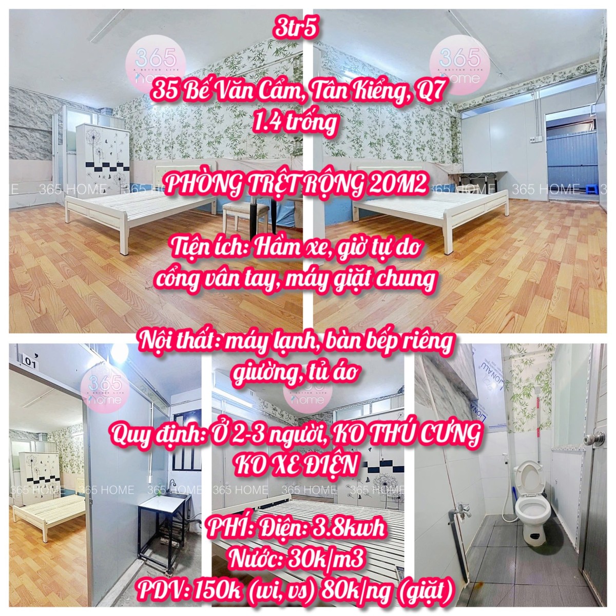 • Quy định: Không nhận thú cưng, không nhận xe điện.