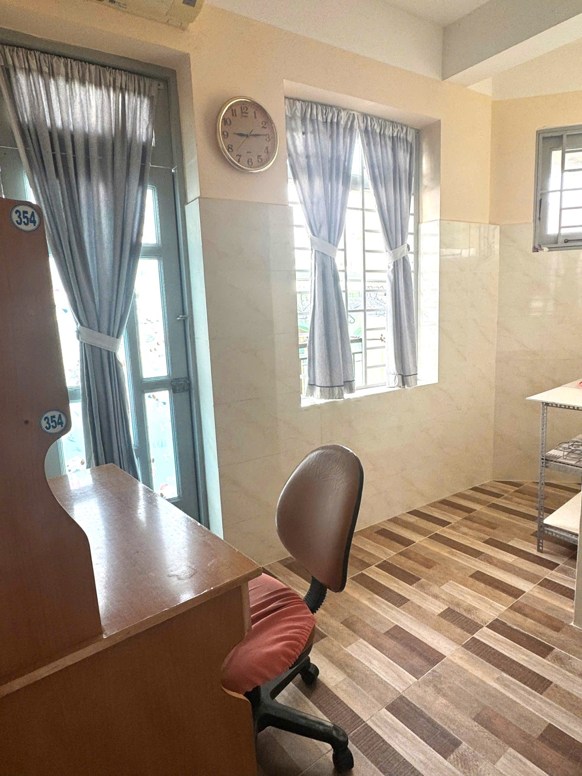 - Nội thất: bàn học, dàn treo quần áo, bàn ghế, khung phơi đồ + móc treo.