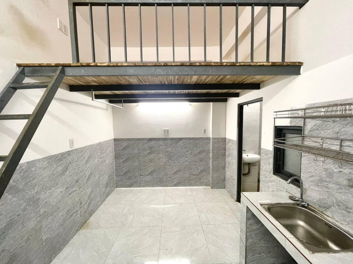 Có gác, toilet riêng, khóa vân tay, tủ lạnh, kệ bếp
