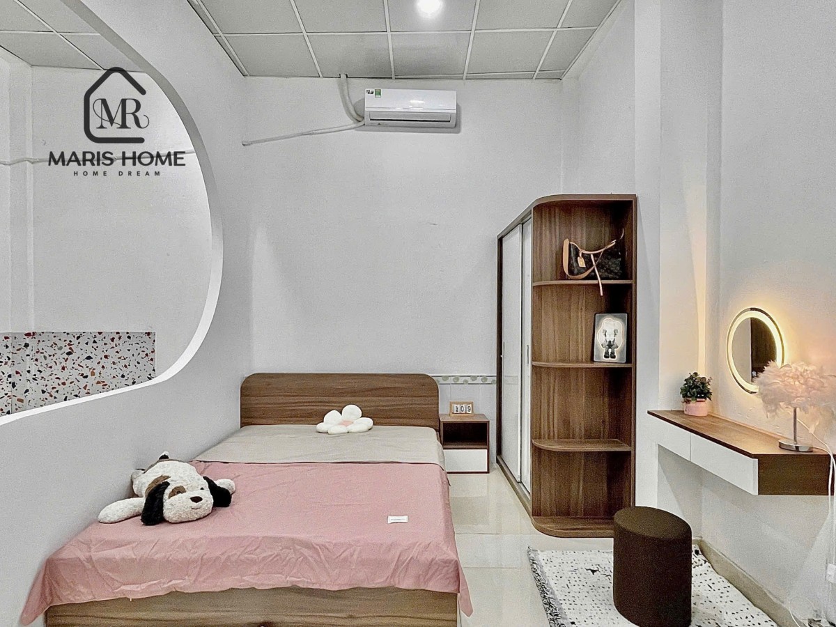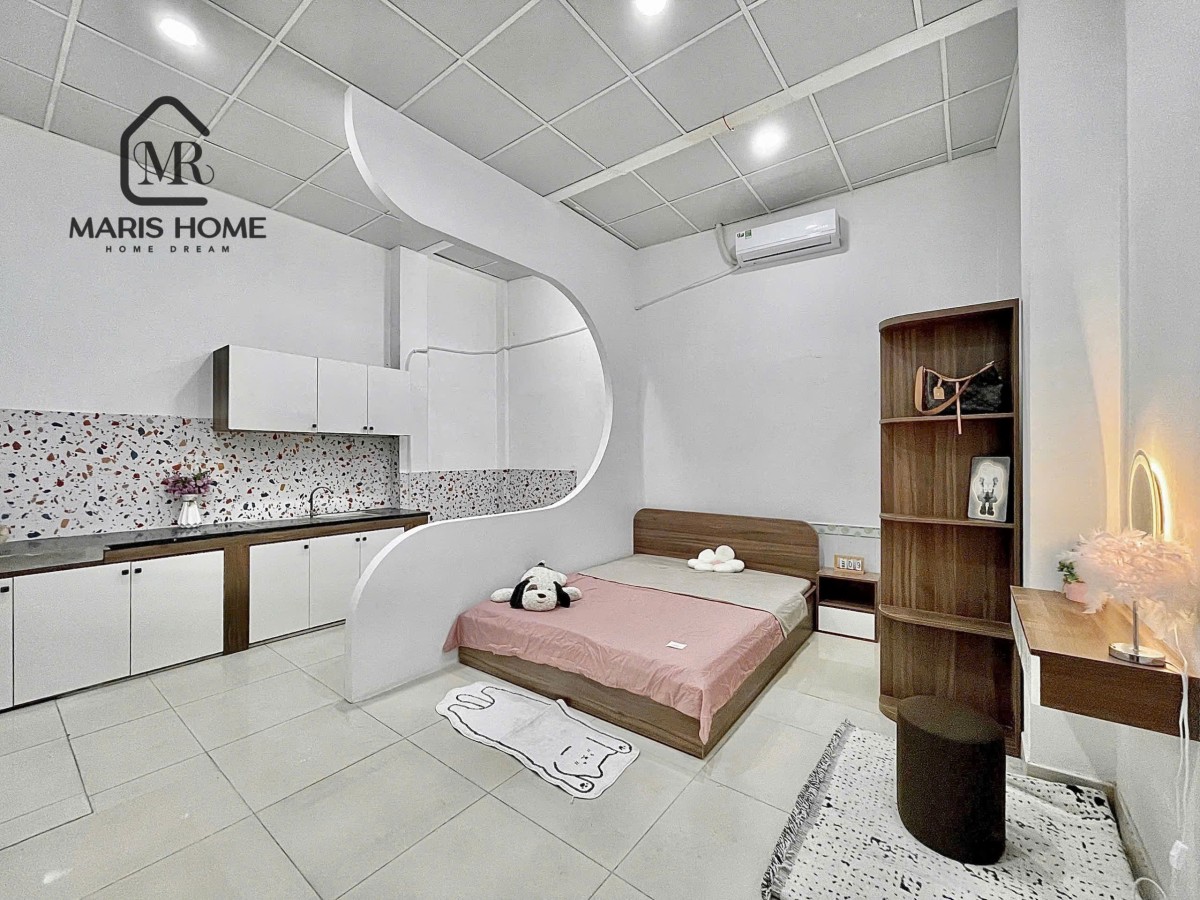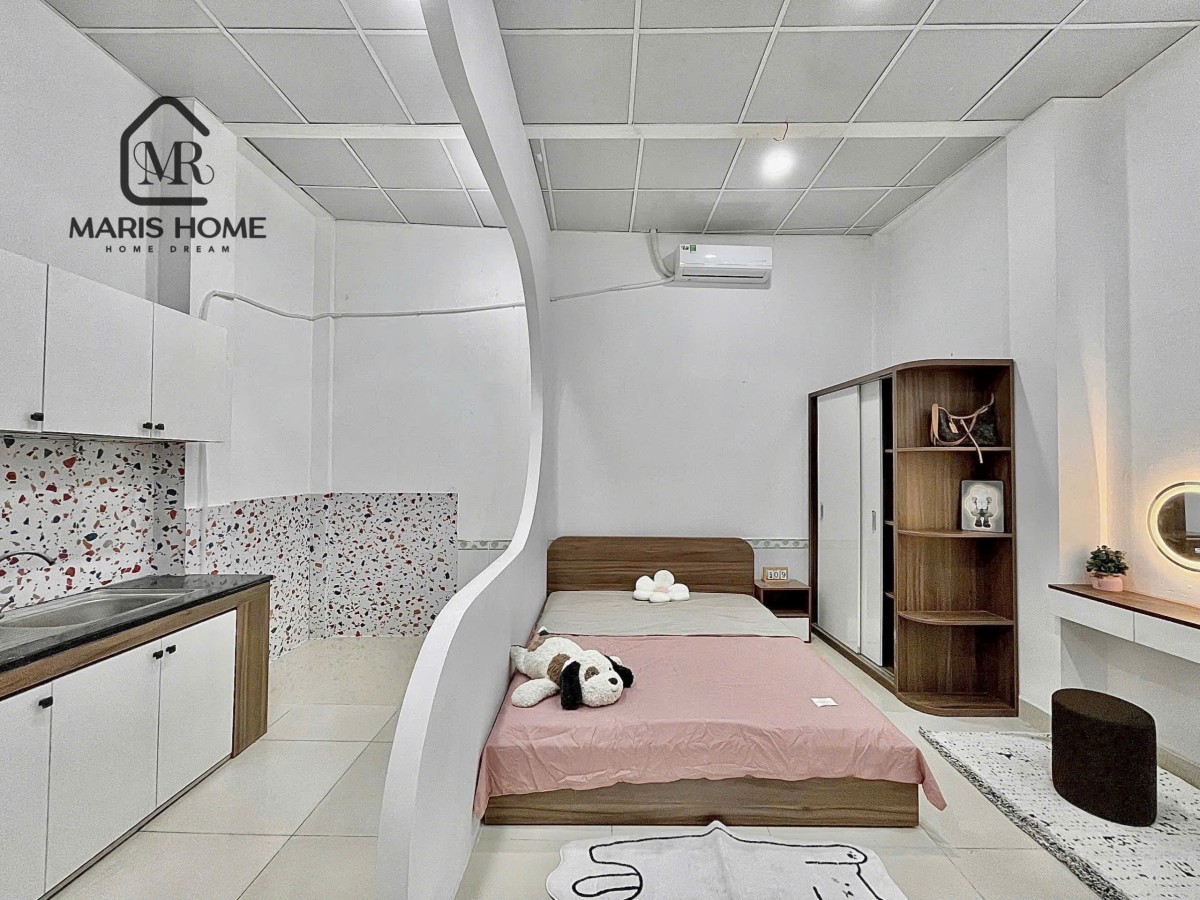 - Nội thất: Máy Lạnh, Tủ Đồ, Giường + Nệm, Kệ bếp lớn trên + dưới, Bàn trang điểm + gương, nhà vệ sinh riêng