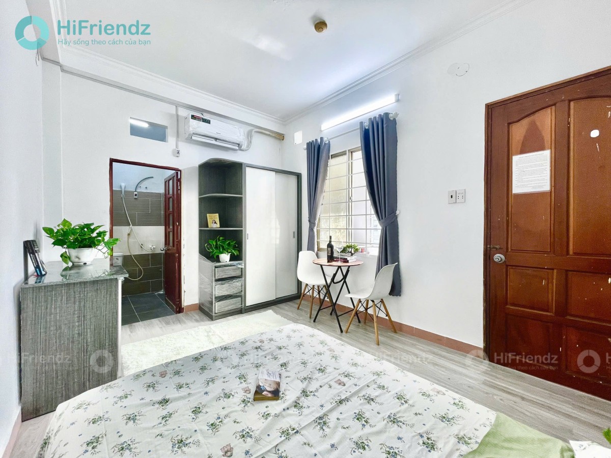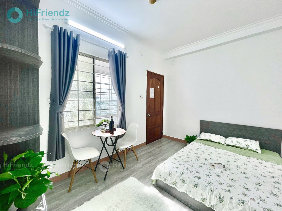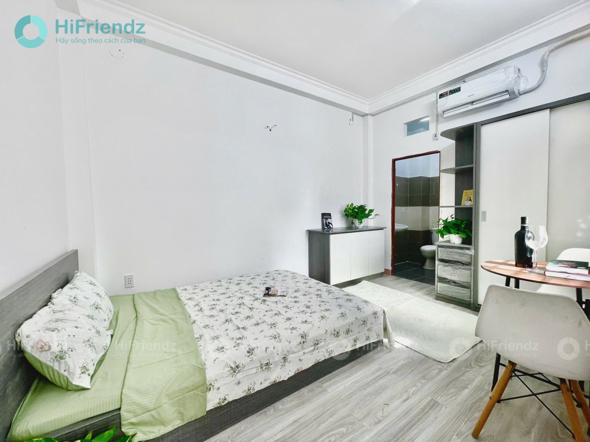 Nội thất cơ bản, tủ quần áo, giường nệm, bàn ghế, có kệ bếp và nhà vệ sinh trong phòng