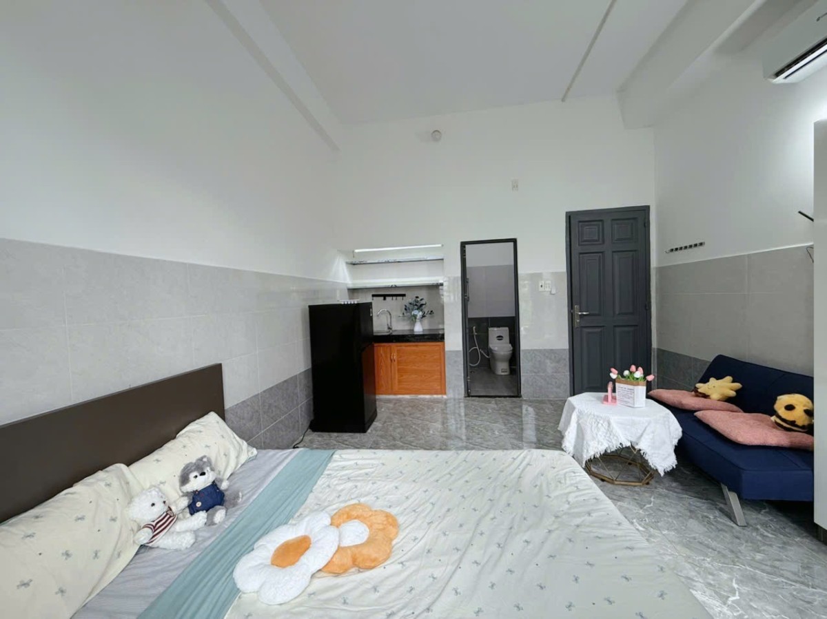 Trang bị: giường, nệm, tủ lạnh, máy lạnh, bếp, tủ quần áo, bàn ghế…