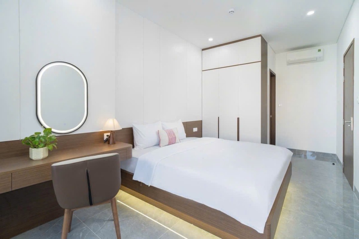 •Full nội thất cao cấp: giường nệm, bàn làm việc, tủ quần áo, tủ lạnh, máy lạnh, rèm, gương, đèn ngủ, bàn trang điểm