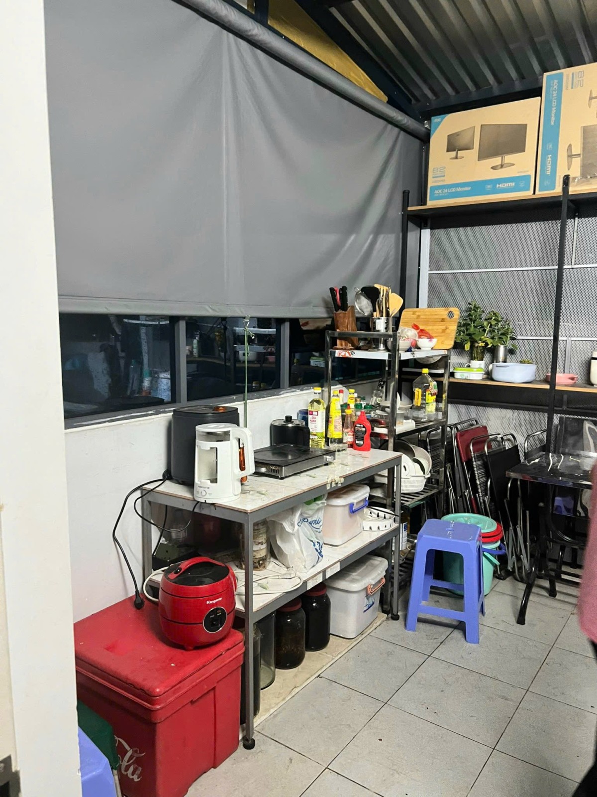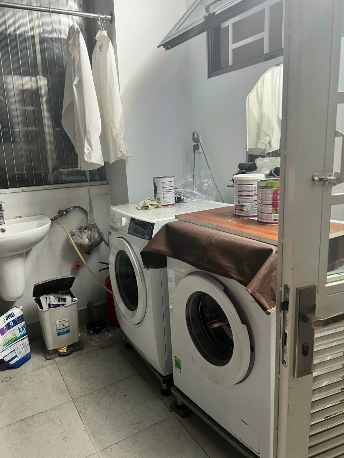 Có máy giặt riêng, sân phơi có mái che.